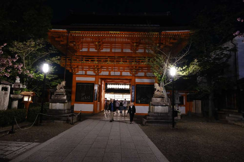 Maintenant qu'il fait nuit je vais vers le temple Yasaka-jinja très joli de nuit. Il y a plein de stand de nourriture.