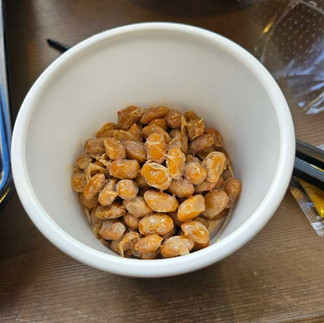 J'ai l'occasion de goûter du natto, un peut rude de tester ça le matin. Ce sont des graines de soja fermentées. C'est un peu comme si tu goûtais du roquefort pour la première fois au petit déjeuné. C'est salé et ça à un goût acide, mais ce n'est pas non plus mauvais.