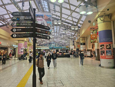 Arrivé à Tokyo à la gare de Shinjuku, qui est la gare la plus fréquenté du monde il paraît. C'est une galère quand tu ne peux pas prendre des escalier (quand tu as une grosse valise comme moi)! Il y a des volontaires pour aider à trouver ton chemin tellement c'est la galère. J'ai pas réussi à sortir sans devoir m'en farcie. Une dame très gentille m'a aidée dans les escalier en portant mon sac parce que c'était trop galère pour moi.