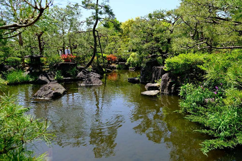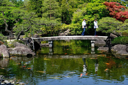Je visite le jardin Koko-en. C'est le plus beau jardin que j'ai vu jusqu'à présent et je regrette presque de ne pas avoir pris un train plus tard pour en profiter davantage.