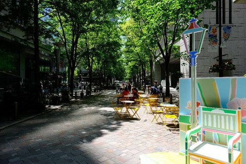 Je me dirige vers le palais impérial, mais sur le chemin je tombe sur cette rue fermée aux voitures et décorée. J'y crois 3 femme en robe de mariée faisant des shooting photo.