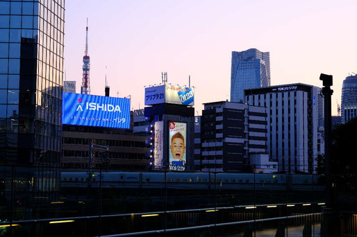 Le soleil se couche entre les buildings, je peux aussi voir la tour de Tokyo. J'ai photographier les building en fin de journée.