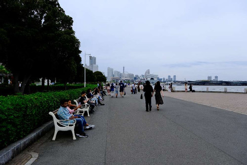 Direction le port de Yokohama avec le jardin. Il y avait plusieurs parterre de fleurs qui ont du etre fait par des personnes différente. Je crois que c'est une sorte de concours ? À moins que ce ne soit des entreprises. Une dame promenait son lapin et son cochon d'inde en laisse.