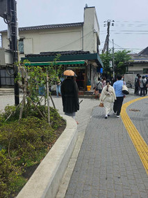 Levé tard mais aujourd'hui ça ne va pas chômer. Direction la ville de Kamakura. Sur la deuxième image vous devriez voir un type déguisé en moine, sachez que c'est un faux moine qui est juste là pour soutirer de l'argent. 25 minutes de marche jusqu'au temple que je veux visiter, le trajet est vraiment super car ce quartier de la ville est vraiment très beau.